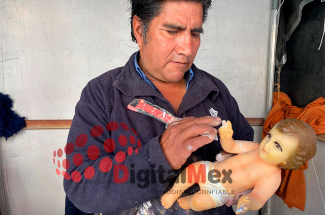 “Normalmente piden los dedos o las cabecitas, que son las partes que más se maltratan, trabajamos madera, pasta y resina, se hace el molde y luego el pintado, todo es a mano porque cada Niño tiene una posición distinta, señaló el artesano.