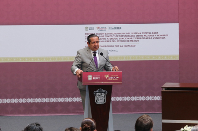 En la Primera Sesión Extraordinaria del Sistema Estatal para la Igualdad de Trato y Oportunidades entre Mujeres y Hombres y para Prevenir, Atender, Sancionar y Erradicar la Violencia contra las Mujeres del Estado de México, firmaron también: María Esther Rodríguez Hernández, secretaria de las Mujeres, Horacio Duarte Olivares, secretario General de Gobierno, Macarena Montoya Olvera, secretaria de Salud, Miguel Ángel Hernández Espejel, secretario de Educación, Ciencia, Tecnología e Innovación del Estado de México y Víctor Leopoldo Delgado Pérez, Presidente de la CODHEM.
