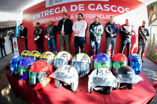 Por su parte, el presidente del Club de Bikers “Carroñeros” y escolta de la Confederación Internacional de Motociclistas Oficiales y Policías de Caminos, Martín Martínez Hernández, y el Delegado de la Federación Nacional RCCM y representante de las Moto Club Hermanos Legendarios de Naucalpan, Julio Cesar Moya, agradecieron la entrega de los 150 cascos que realizó el Alcalde y dijeron que reconocen que muchas veces la falta de un buen casco es la diferencia entre la vida y la muerte.