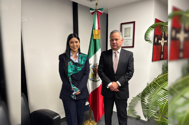 La presidenta municipal Carmen Albarrán Gabriel y el director general del IMPI, Santiago Nieto Castillo.