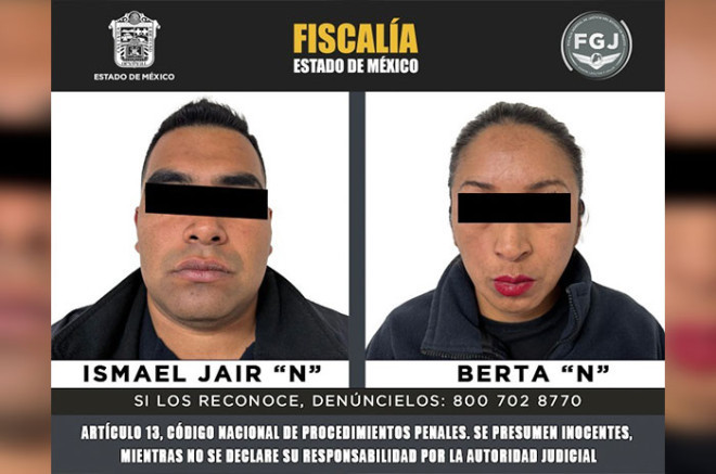 La Fiscalía General de Justicia del Estado de México (FGJEM) obtuvo vinculación a proceso en contra de Berta “N” e Ismael Jair “N”, policías municipales de Temoaya, por su presunta intervención en el delito de homicidio calificado en agravio de un masculino.