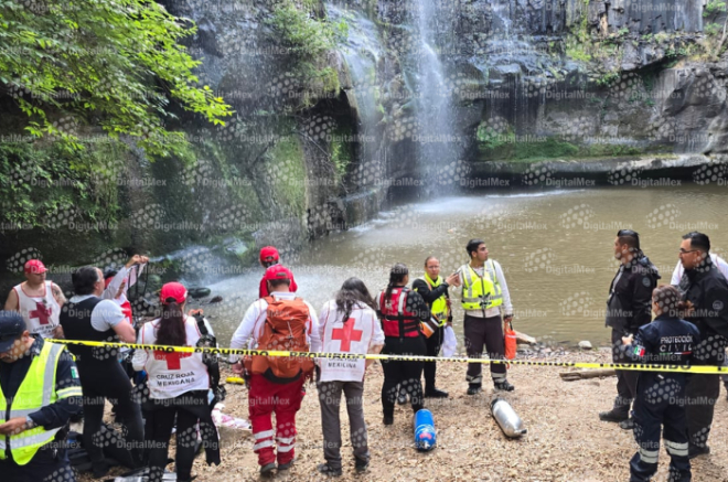 En una cascada ubicada en la comunidad de San Joaquín Coscomatepec, municipio de Aculco.