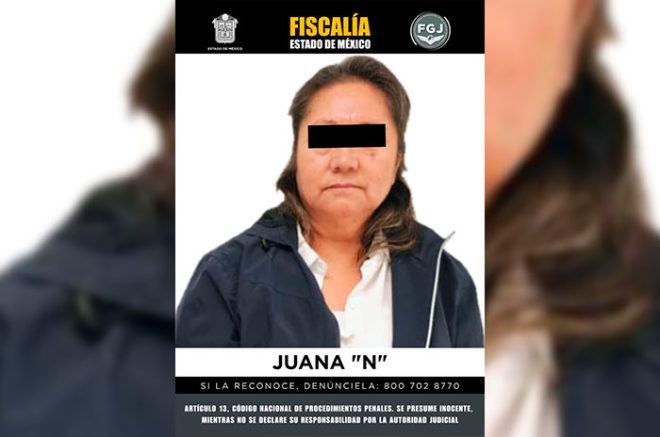 Elementos de la Fiscalía General de Justicia del Estado de México (FGJEM) aprehendieron a Juana “N”, investigada por su probable participación en el delito de extorsión en agravio de cuatro personas, hechos registrados en febrero de 2025 en esta región de la entidad.