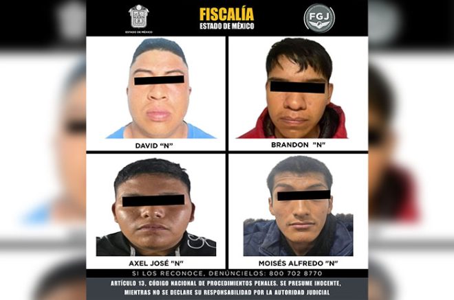 Se trata de Axel José “N”, Moisés Alfredo “N”, David “N”, alias “Viruta”, y Brandon “N”, quienes enfrentan cargos por homicidio en grado de tentativa y daño en los bienes, luego de que la Fiscalía General de Justicia del Estado de México acreditara su posible intervención en los hechos.