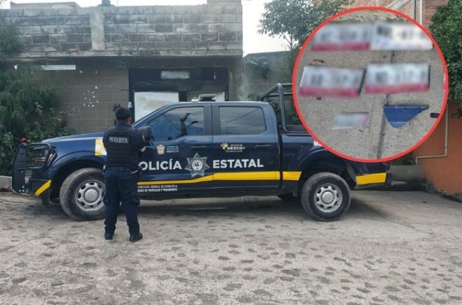 Elementos de la Secretaría de Seguridad del Estado de México (SSEM) resguardaron un predio en el municipio de Chalco donde fueron encontrados dos vehículos compactos con reporte de robo vigente, así como diversas autopartes y placas relacionadas con ilícitos.