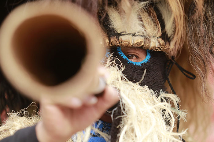 Los danzantes usan una vestimenta artesanal elaborada de ixtle, un “greñero” hecho con colas de res que pueden llegar a pesar 10 o 15 kilos, así como cuernos en los que cuelgan o amarran listones de colores, cascabeles o espejos.
