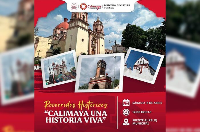 Como parte de esta estrategia, el próximo sábado 18 de abril a las 12 horas se llevará a cabo el recorrido “Calimaya, Una Historia Viva”, dirigido a quienes deseen conocer los monumentos más representativos de la cabecera municipal. La salida será desde la Torre del Reloj, inaugurada en 1921 para conmemorar el centenario de la Independencia de México.