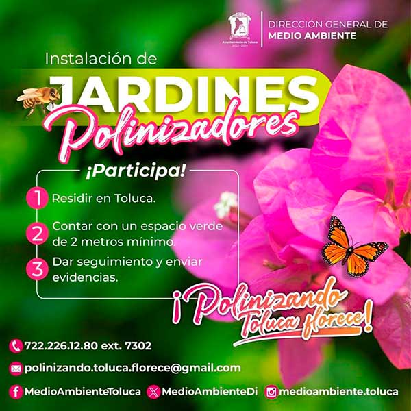 Con el objetivo de involucrar a la ciudadanía en la construcción de una ciudad sustentable y con mayor biodiversidad, el gobierno de la ciudad invita a los toluqueños a sumarse a la red de jardines polinizadores del municipio.