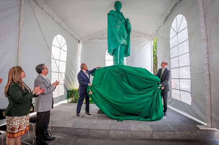 Acompañado del escultor de la obra, Víctor Gutiérrez, el rector develó la estatua de quien el propio artista plástico reconoció como uno de los grandes hombres de la Reforma.