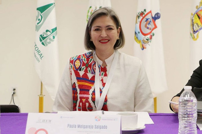 Por su parte, la Consejera Electoral, Paula Melgarejo Salgado, presentó el trabajo Paridad de género y representación política: revisión a la integración de la Legislatura del Estado de México y realizó un recuento sobre la lucha por la paridad de género en los procesos comiciales. Expuso que desde 2014 se asignó a las autoridades electorales la obligación de garantizar la paridad y que, al inicio de la incorporación de dicho tema, se hablaba solo de la postulación de los cargos, pero se evolucionó a través de resoluciones y sentencias de los tribunales; ahora es indispensable vigilar que los cargos públicos de elección realmente sean ocupados por mujeres: esto implica un gran desafío tanto para el Instituto, como para los Tribunales.