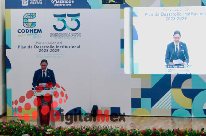 Este viernes se conmemoró el 33 aniversario de la Comisión de Derechos Humanos del Estado de México (CODHEM), marco en el que se presentó el Plan de Desarrollo Institucional 2025-2029, documento que trazará la ruta ética y operativa del organismo para los próximos años. Durante el acto, el presidente de la CODHEM, Víctor Leopoldo Delgado Pérez, destacó que la institución ha evolucionado de ser una aspiración ética a consolidarse como pilar del Estado constitucional, colocando a la dignidad humana en el centro de la acción pública.