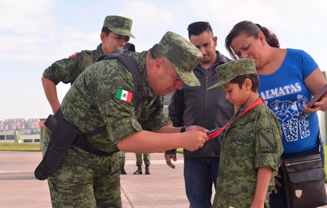 Con su uniforme verde camuflajeado, la pequeña de 10 años tuvo un reconocimiento Honorario como miembro del 59/o. Batallón de Infantería, localizado en San Miguel de los Jagüeyes, en Huehuetoca.