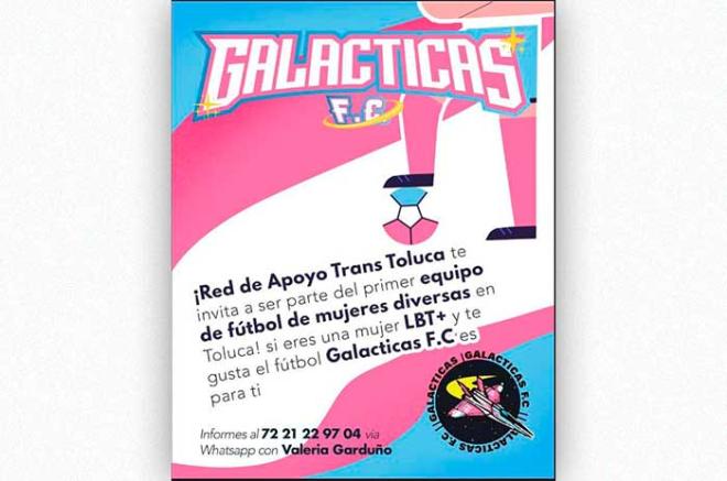Por primera vez en el Valle de Toluca buscan integrar el equipo de fútbol Galácticas F.C., conformado por mujeres diversas a iniciativa de la Red de Apoyo Trans Toluca.