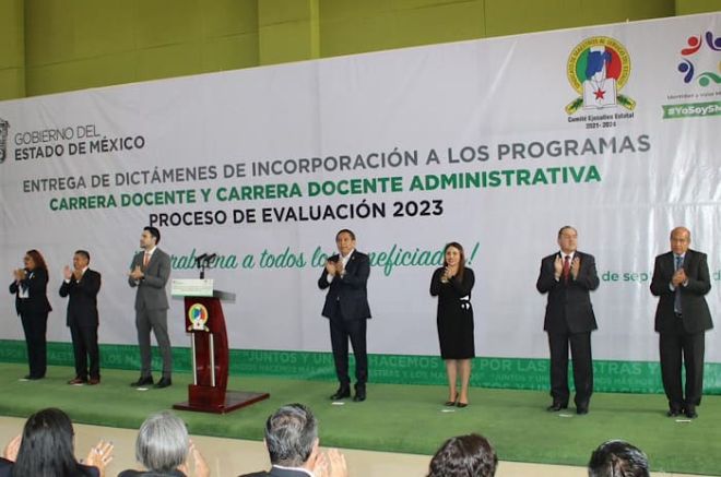 En un acto que tuvo lugar en el auditorio “Profr. Agripín García Estrada” en días recientes, el Sindicato de Maestros al Servicio del Estado de México (SMSEM) celebró la entrega de dictámenes de incorporación a los programas de Carrera Docente y Carrera Docente Administrativa a mil 400 destacados profesores que forman parte de esta organización gremial.