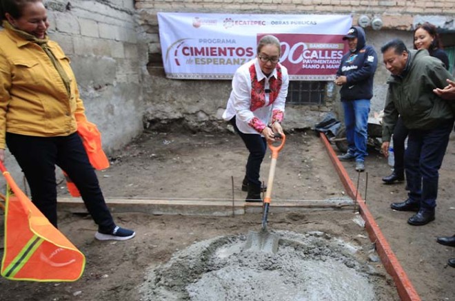 Como parte de las acciones en los primeros 100 días de gobierno, la presidenta municipal Azucena Cisneros Coss arrancó en el pueblo de San Pedro Xalostoc, el programa “Cimientos de Esperanza”, que contempla pavimentar con trabajo comunitario y una inversión de 34 millones de pesos, un total de 100 calles.