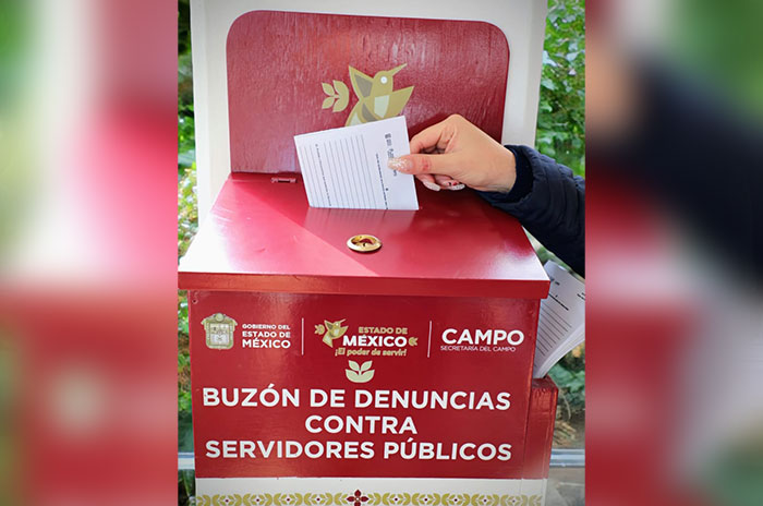 Para mejorar la atención de servidores públicos a la población rural y prevenir posibles actos de corrupción, la Secretaría de la Contraloría del Estado de México instalará buzones de quejas y comentarios en las once Delegaciones Territoriales y otros espacios de la Secretaría del Campo (SeCampo).