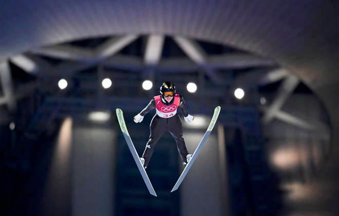 La noruega Maren Lundby, con un salto de 110 metros y un puntaje total de 264.6 ganó medalla de oro en salto de esquí femenino en las Olimpiadas de Invierno venciendo a las alemanas Katharina Althaus que terminó en segundo lugar y Carina Vogt, campeona defensora, que obtuvo el quinto lugar.