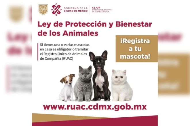 Entró en vigor la nueva Ley de Protección y Bienestar de los Animales en Ciudad de México, la cual estipula que será obligatorio que todas las mascotas de la ciudad cuenten con el Registro Único de Animales de Compañía (RUAC). Aplica para todo tipo de animales y especies silvestres que estén bajo el cuidado de un ciudadano capitalino.