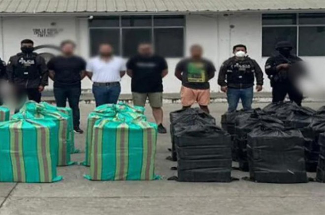 La policía de Ecuador detuvo a dos ciudadanos mexicanos, un colombiano y un ecuatoriano en una operación antidrogas en Portoviejo, provincia de Manabí, tras localizar aproximadamente 1.5 toneladas de clorhidrato de cocaína.