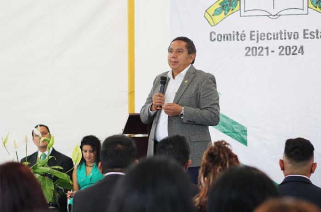 En su presentación en la Normal de Santiago Tianguistenco, Marco Aurelio Carbajal destacó el compromiso del magisterio afiliado al SMSEM, siempre responsable y empeñando sus mejores esfuerzos en beneficio de sus alumnos, por lo que les exhortó a seguir por este camino.