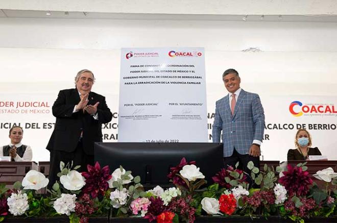 Por su parte, David Sánchez Isidoro, Presidente Municipal de Coacalco, agradeció al PJEdomex por permitir que el municipio sea pionero en la implementación de este programa y aseguró el compromiso de cada uno de los servidores públicos para operarlo adecuadamente en beneficio y protección de la sociedad.