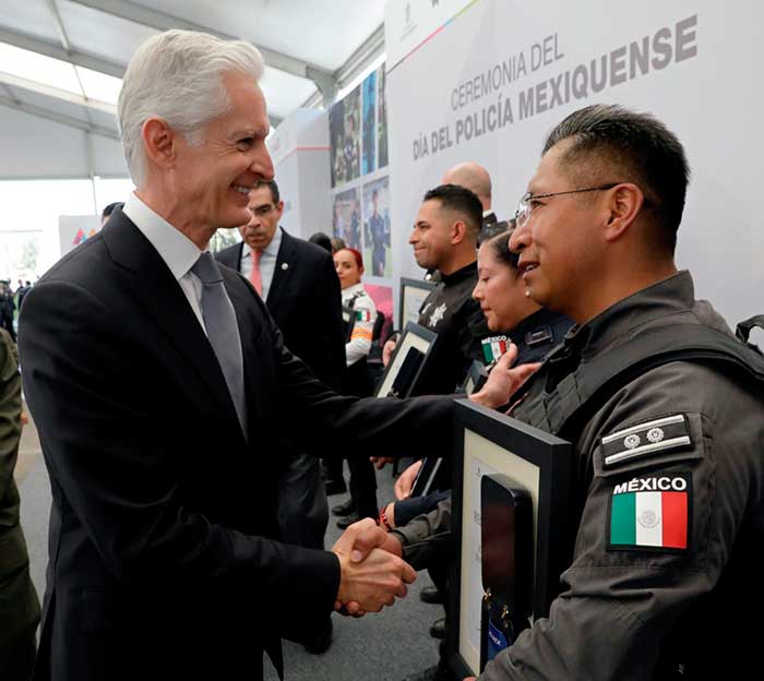 En reconocimiento a su labor cotidiana y al sacrificio que hacen para ofrecer más seguridad a la ciudadanía, el Gobernador Alfredo Del Mazo Maza refrendó su compromiso para continuar mejorando la labor policial y aseguró que, a poco más de cinco años de que inició su administración, hoy el Estado de México cuenta con una mejor policía, que está más preparada para hacer frente a la delincuencia.