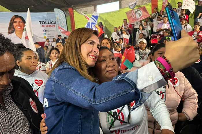 En el último día de su campaña para la presidencia municipal de Toluca por la coalición Fuerza y Corazón por Edoméx, la candidata recorrió Cerrillo Vista Hermosa, Bordo de las Canastas y San Pablo Autopan, donde fue bendecida por el pueblo otomí.