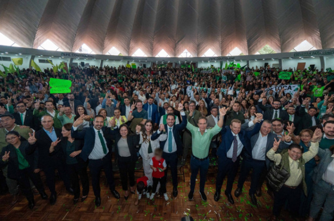 El Salón Rojo se pintó de verde con la asistencia de diputadas y diputados federales y locales, regidores de los 125 municipios y alcaldes de las 19 administraciones municipales que gobierna el PVEM en el Estado de México.