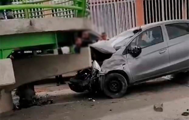 Pero al llegar al puente de San Miguel Totocuitlapilco en Metepec, chocaron contra base de concreto.