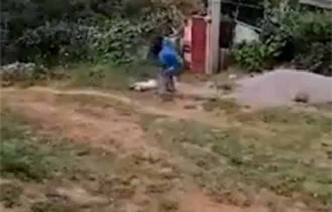 Un sujeto le provocó la muerte a una perrita luego de que la atacara a machetazos; las indignantes imágenes quedaron captadas en video.