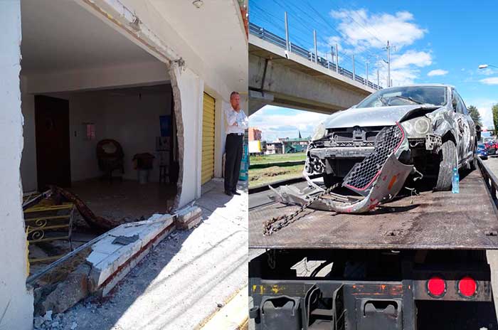 El coche fue retirado en grúa con el apoyo de Protección Civil y Bomberos, los daños en la casa fueron en una barda y muebles que había al interior de una habitación.