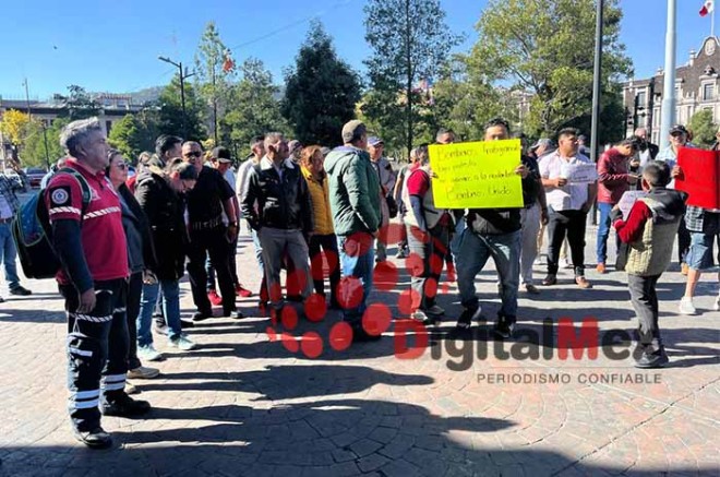 Alrededor de 30 elementos del Heroico Cuerpo de Bomberos de Toluca se manifestaron este lunes frente a la sede del ayuntamiento para exigir la restitución de sus prestaciones laborales, específicamente el aguinaldo, y mejoras salariales, luego de más de nueve años sin incrementos en sus ingresos.