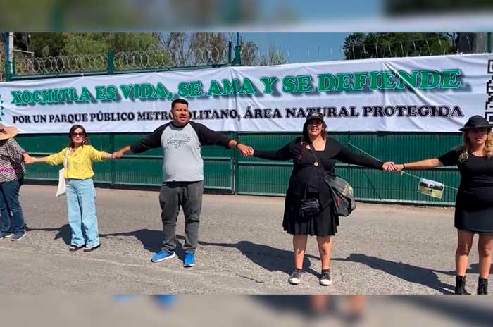 Con una cadena humana, habitantes y ambientalistas se reunieron para alzar la voz y exigir que se proteja de una posible invasión el Parque Ecológico Xochitla, en el municipio de Tepotzotlán.