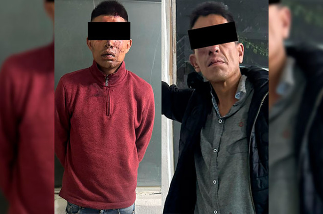 A Sergio “N”, de 50 años, y Carlos Saúl “N”, de 26 años, se les encontró una réplica de arma de fuego, así como dos teléfonos celulares —uno de ellos propiedad de una de las víctimas— y dinero en efectivo.