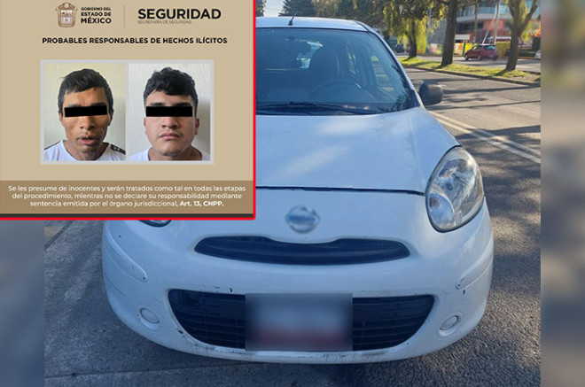 Derivado de trabajos de investigación en atención a diversas denuncias por robo, elementos de la Secretaría de Seguridad del Estado de México (SSEM), en coordinación con personal de la Fiscalía General de Justicia de la entidad (FGJEM) y de la Policía Municipal, localizaron y aseguraron un vehículo al parecer relacionado con al menos cinco eventos de robo a transeúnte con violencia; en la acción, detuvieron a dos hombres que tripulaban la unidad, probables implicados en los delitos de portación de arma de fuego, contra la salud y encubrimiento por receptación.