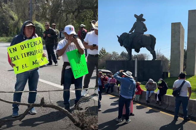 Los manifestantes exigen soluciones a sus demandas y la presencia de Delfina Gómez Álvarez, gobernadora del Estado de México, para atender los problemas de la falta de agua, la contaminación de los manantiales debido a la "mala planeación de la autopista Naucalpan-Toluca", y por el panteón clandestino.