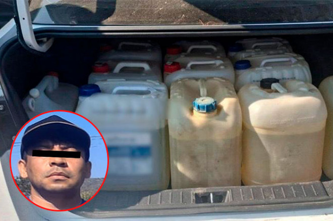 Resultado de la estrategia de seguridad implementada por la actual administración, elementos de la Secretaría de Seguridad del Estado de México (SSEM) detuvieron a un hombre en posesión de hidrocarburo de dudosa procedencia; en la acción, aseguraron 14 garrafas de 20 litros cada una con posible gasolina.