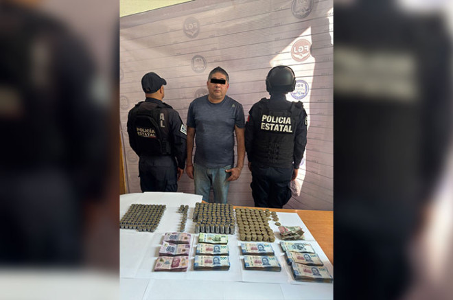 Al concluir con la revisión, los oficiales localizaron un teléfono celular y al interior de una mochila 188 mil pesos, cantidad que no pudo acreditar su legal posesión, por lo que detuvieron a Geovanny “N”, de 52 años de edad.