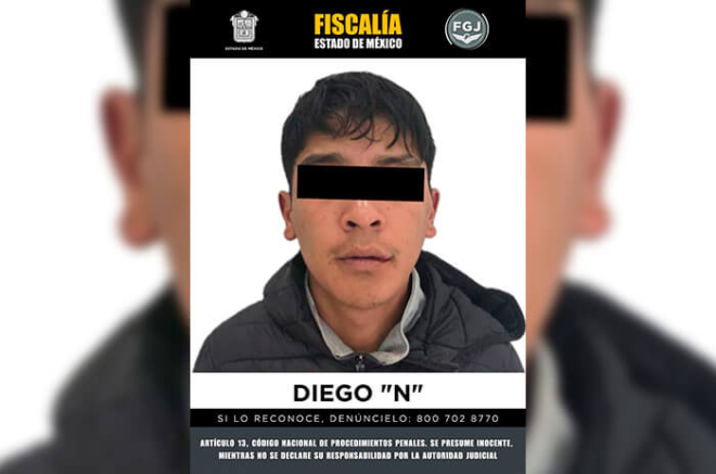 Elementos de la Fiscalía General de Justicia del Estado de México (FGJEM) dieron cumplimiento a una orden de aprehensión en contra de un individuo identificado como Diego “N”, quien es investigado por su probable intervención en el delito de homicidio cometido en agravio de un adolescente.