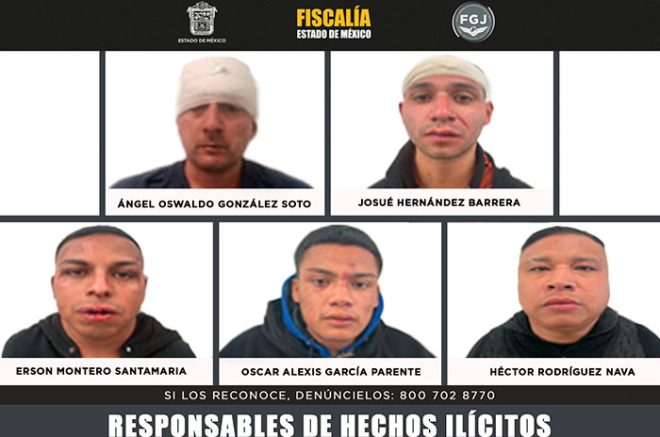 La Fiscalía General de Justicia del Estado de México (FGJEM) obtuvo una sentencia condenatoria por 110 años en contra de Ángel Oswaldo González Soto, Josué Hernández Barrera, Erson Montero Santamaria, Oscar Alexis García Parente, Héctor Rodríguez Nava, luego de acreditar su responsabilidad en el delito de secuestro exprés con fines de robo, suscitado en esta demarcación.